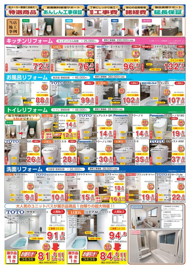 南相馬市・相馬市 トイレ/洗面/キッチン/お風呂/給湯器リフォームのカジラク